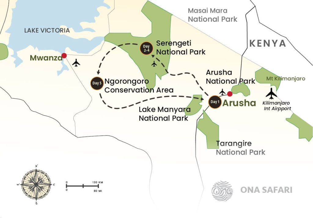 Embark on an unforgettable 5-day, 4-night luxury safari adventure through Tanzania’s most iconic landscapes, where world-class comfort meets extraordinary wildlife encounters.