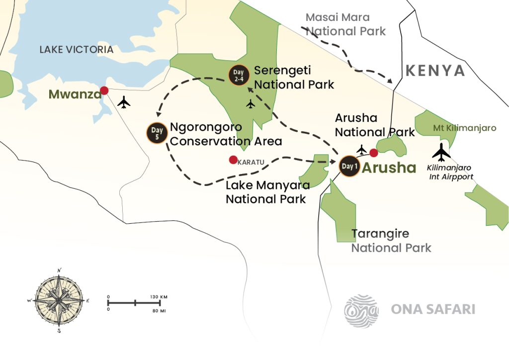 Embark on an unforgettable 5-day, 4-night luxury safari adventure through Tanzania’s most iconic landscapes, where world-class comfort meets extraordinary wildlife encounters.