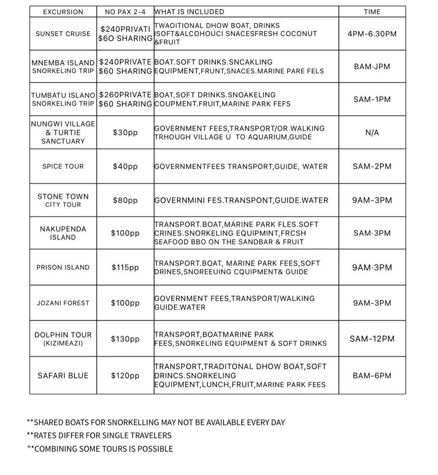 Respect local customs and dress modestly when exploring Stone Town or villages (cover shoulders and knees).